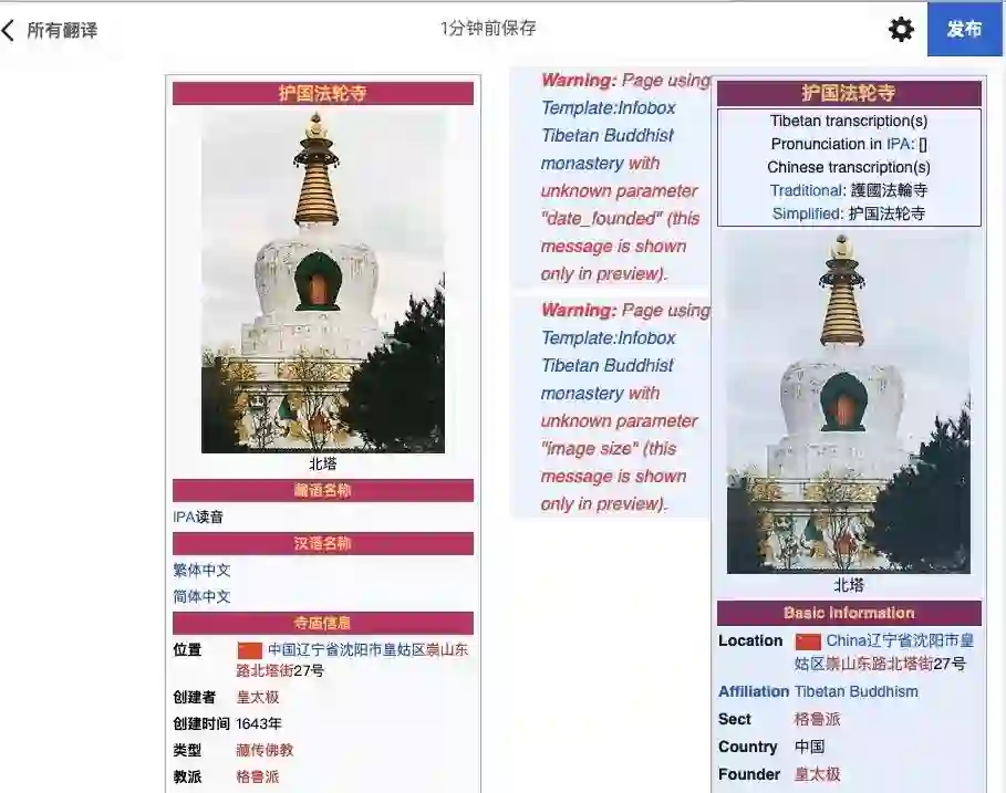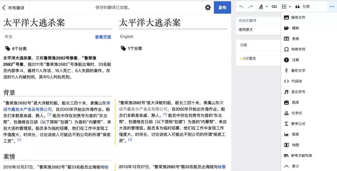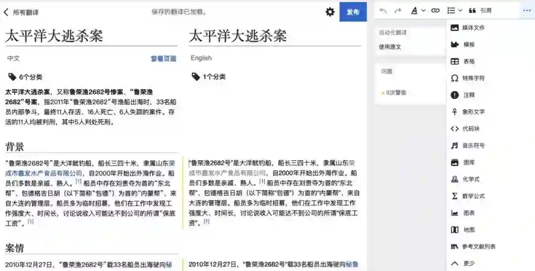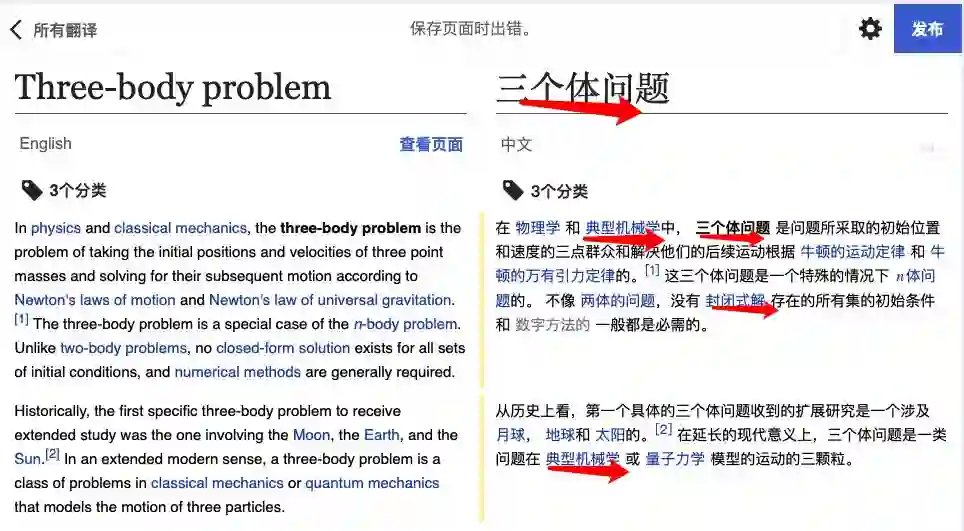 不过,可能正是因为目前处于测试版,我们在接下来尝试用谷歌翻译编写/完善维基百科词条时,出现了各式各样不尽如人意的问题。