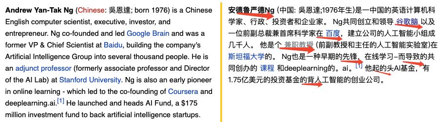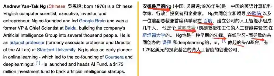 比方说,当你输入“ Andrew Ng ”的词条后,满眼可见的是机器翻译后的“硬伤”: