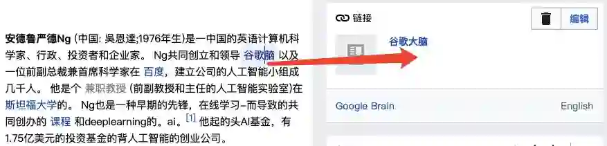 不过,如果鼠标点击附有超链接的专有名词“Google Brain”,右侧提示栏仍会显示正确的翻译。