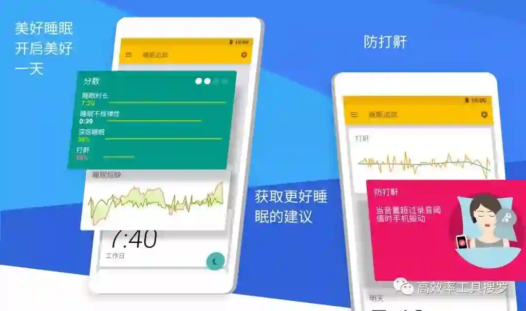 你的睡眠质量使用它统计的一览无余。然后慢慢改善提升睡眠质量。