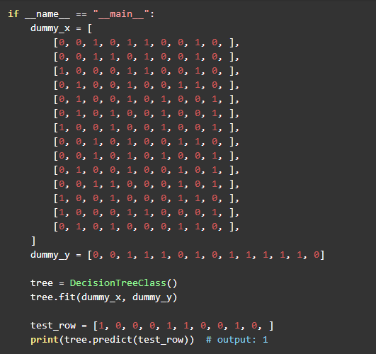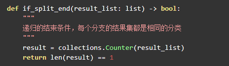 本章将构造出完整的决策树,所以递归的停止条件是所有待分析的训练集都属于同一类: