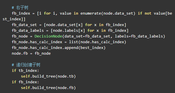 根据信息增益的特征索引将训练集再划分为左右两个子树。
