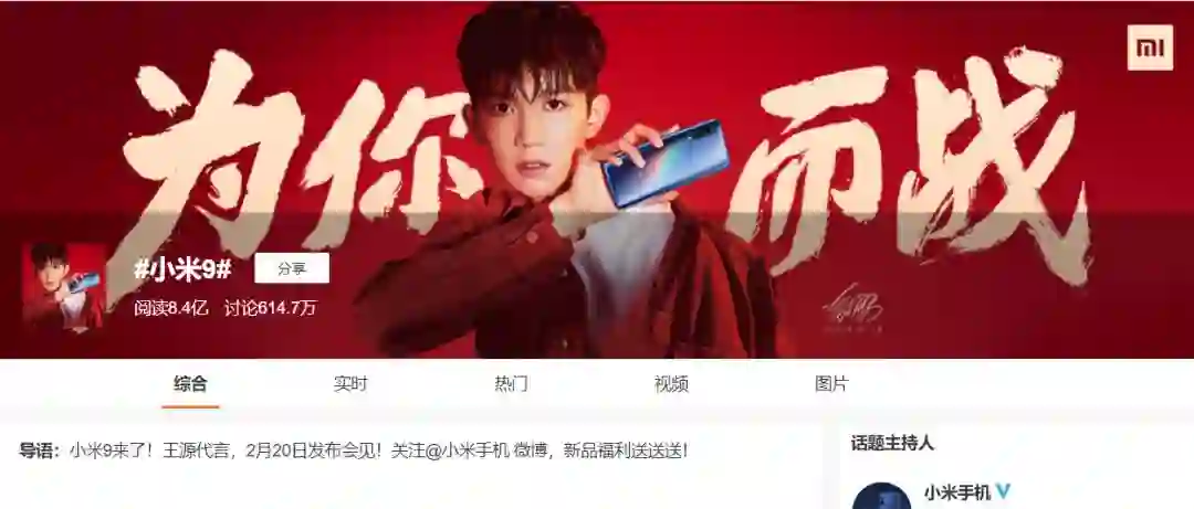 持续的曝光让小米 9 话题和雷军的微博收获了相当高的关注度,截至的2 月 18日早晨,#小米 9# 的微博话题阅读量已经在短短 5 天时间内达到了 8.4 亿,相比同时期的三星 Galaxy S10(#三星 GALAXY S10#微博话题阅读量为 269 万)大约高出 200 倍之多。
