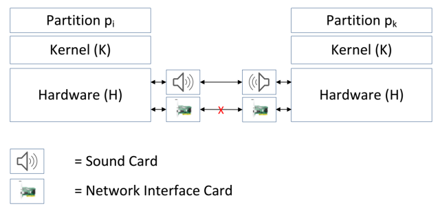 声波不光能够传播人类的语言声,起到交流沟通的作用,还能够作为传输载体,调制数字化信息。正常人耳听到这段声波后无法还原信息,必须通过预定的调制解调方式,才能获得声波中的有效信息。一般而言,信息设备中的声设备(如声卡、扬声器、麦克风等)工作频段带宽要大于人耳接受的声频段带宽,当有人选择超出人耳接受范围的频段或人容易忽略的特种声音作为载波,就可以实现信息的隐蔽传输。目前已经有不少研究人员关注这种新颖的通信方案,并尝试利用声波突破物理隔离的安全基线,将敏感信息通过声信道发送给外界进行窃密。