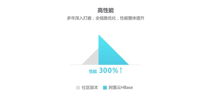 阿里云数据库专家对原生HBase内核源码进行深度优化,让云数据库HBase版(ApsaraDB for HBase)的读写性能相较于社区版本最高提升300%。磁盘及节点可灵活扩容,可轻松扩展到千台规模,满足千万级QPS及PB级存储空间。