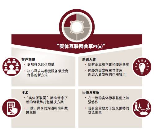 2011年乔治亚理工学院Benoit Montreuil教授首次提出“实体互联网共享(PI)”,意思是实物更具标准化并像网络数据包一样共享渠道,那么可能更有效转移。物流是最具“实体互联网共享”试验性质的行业。美国有535,000个配送中心,其中绝大部分单独运营 ,如果这些配送中心实现合作,将会节约多少成本,物流工作流程也将实现标准化,以获得最高效率。