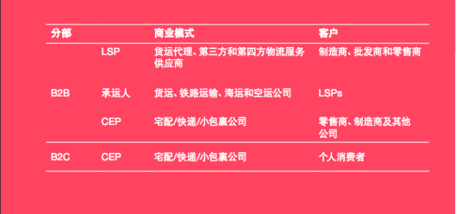 尽管各商业模式存在重叠,物流行业仍存在若干的商业模式。本报告中涵盖了物流服务供应商(LSP)、承运人和宅配/快递/小包裹(CEP)公司以及邮政运营商,也是物流和CEP行业的相关参与者。这些不同的行业参与者不仅商业模式不同、盈利能力和利润也存在着巨大差异。