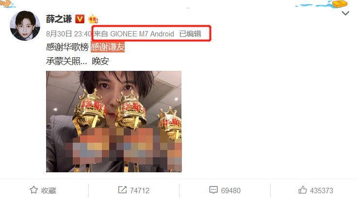 据悉,薛之谦是2017年5月份正式成为金立手机代言人的,自从代言了金立手机之后,薛之谦几乎在各种场合全部使用的都是金立手机。即便在金立公司申请破产的这段时间里,薛之谦依然在使用金立手机,他的微博小尾巴永远都是金立M7。