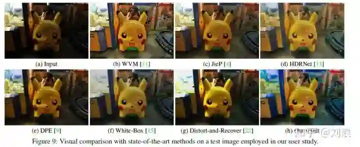 而且不是像以前的工作那样,直接学习图像到图像的映射,而是在新网络中引入中间照明,将输入与预期的增强结果相关联,增强网络从专家修饰的输入/输出图像学习复杂的摄影调整的能力。在此模型的基础上,构造了一个对光照采用约束和先验的损失函数,结果证明,新算法模型,效果超过了市面上一众当红的多摄多硬手机。