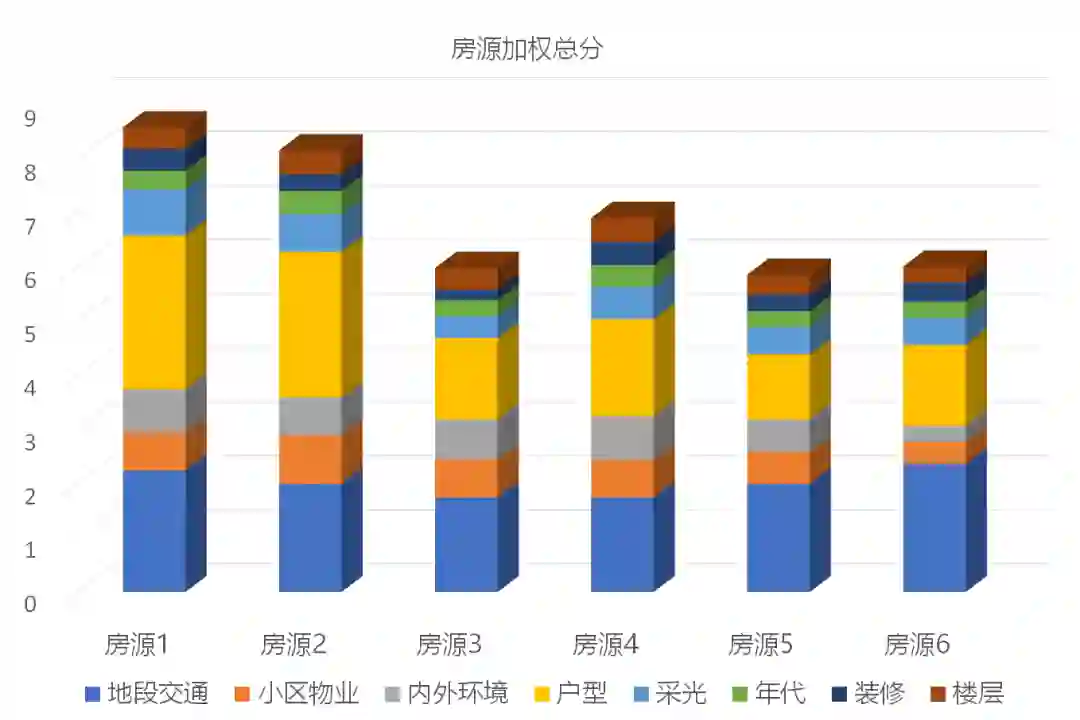 但是,这样的评价是无法直接指导买房的,因为不同指标的“含金量”不同,用术语讲,就是权重不同。