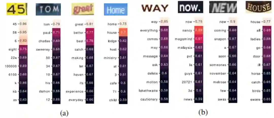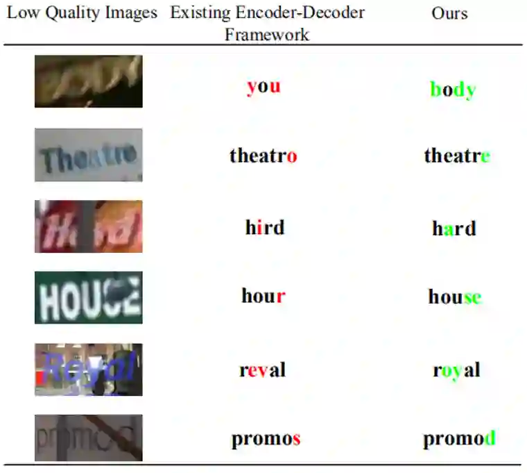 随着模型的不断迭代,场景文本识别器在许多规则文本上已经具有足够的鲁棒性。而不规则文本的识别在纠正、多方向编码等模块的帮助下也取得了长足的发展,但是很少有学者会关注到低质量文本识别的问题。面对模糊、遮挡、字体残缺等情况,现有的识别器很难从局部图像特征中识别出字符,因此,这篇文章引入了一个全局的语义信息来指导字符的识别,一些识别样例如Fig.1所示。