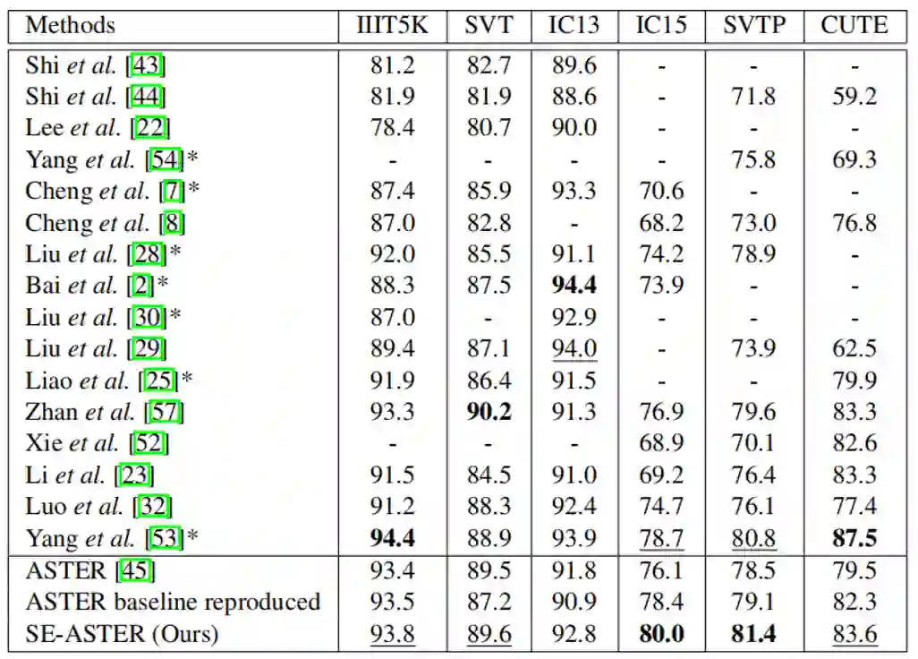 将SEED与ASTER模型相结合,可以达到SOTA的效果。