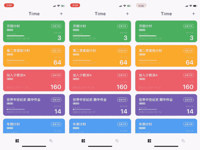 而通过快捷的手势操作,一个个日子卡片的管理变得十分便捷。除了上面动图展示的长按拖动来排序,对于每一个卡片,你还可以向右滑动来归档,向左滑动来删除,这两种操作都可以通过长滑来一步到位。