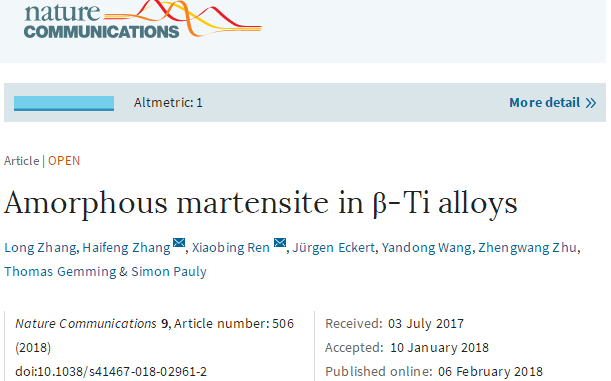 近日,中国科学院金属研究所沈阳材料科学国家(联合)实验室非平衡金属材料研究部研究员张海峰团队,与西安交通大学、北京科技大学、德国Leibniz固体材料所以及奥地利科学院Erich Schmid材料所科研人员合作,发现了一种新的固态非晶化机制——马氏体相变致非晶化机制。