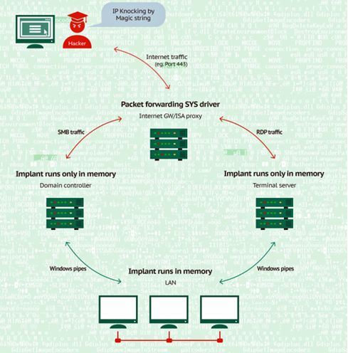 大东:Duqu2.0最大的特点是恶意代码只驻留在被感染机器的内存里,硬盘里不留痕迹,某台机器重启时恶意代码会被短暂清洗,但只要它还会连上内部网络,恶意代码就会从另一台感染机器传过来,进而造成一连串的连锁反应,从而盗取目标系统中的信息。