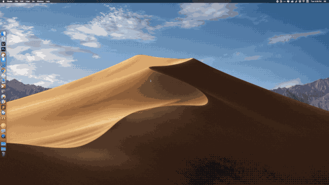 桌面上最大的变化体现在桌面文件的排布上,Mojave 加入了一个叠放功能,可以将你桌面上的所有文件自动归类到一个个的堆栈中,让你的桌面看起来更加简洁,也更加方便管理和调用文件。默认情况下,叠放功能会按照文件类型进行分类,当然你也可以改成按照文件创建日期、修改日期、标签等其他元数据来进行分类。另外,你还可以使用触控板和妙控鼠标实现对堆栈中文件的预览。