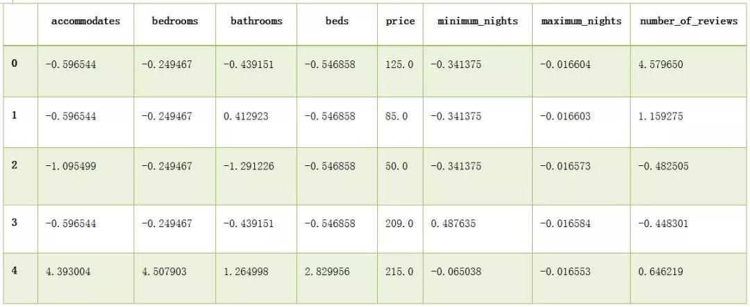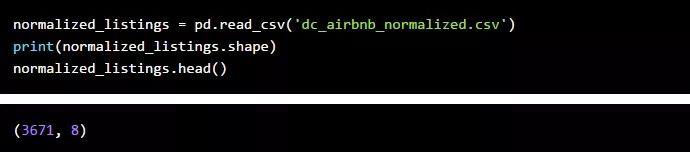 让我们看一下这个清理过的版本,它被称为 dc_airbnb. normalized.csv,并预览前几行: