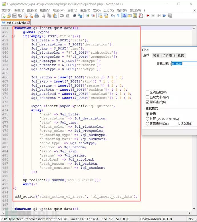 根据POC快速定位到函数。发现POST传入的数据并没有被程序过滤就写入了数据库中。