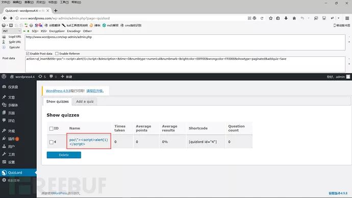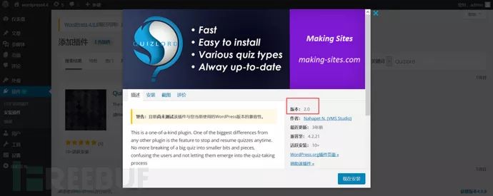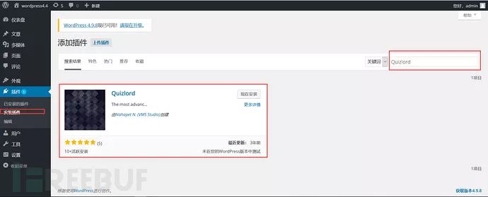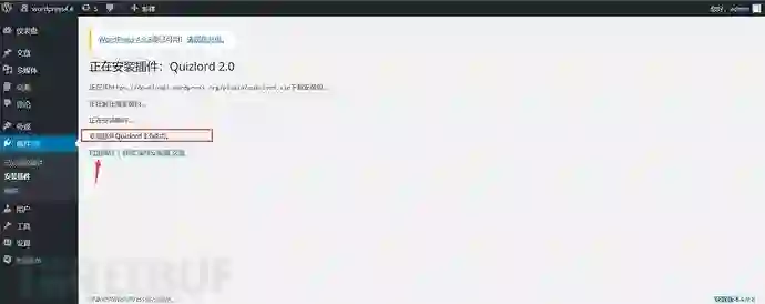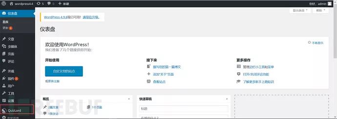首先搭建worepress,我的版本是4.4。然后进入后台下载插件Quizlord,版本是2.0。
