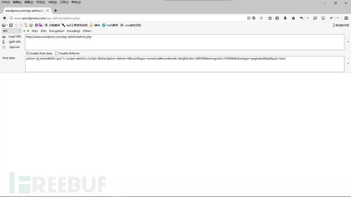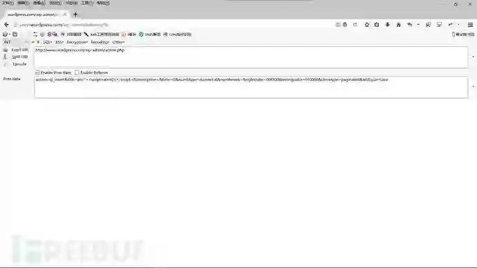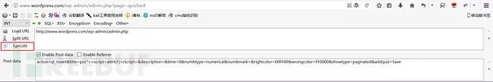 此时浏览器的地址栏正好对应poc中的referer内容,现在只要使用火狐插件hackbar并根据POC构造POST请求。点击execute即可发送该POST请求。