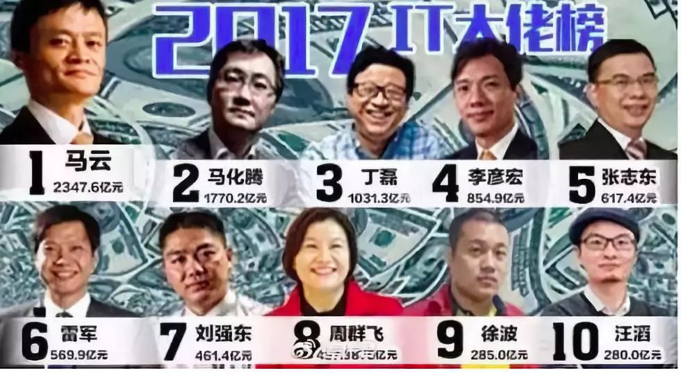 看到这些,你丝毫不会想到这是一个身家280亿的互联网新贵。2017年IT大佬收入排行榜上,徐波以285亿元资产位列第九。