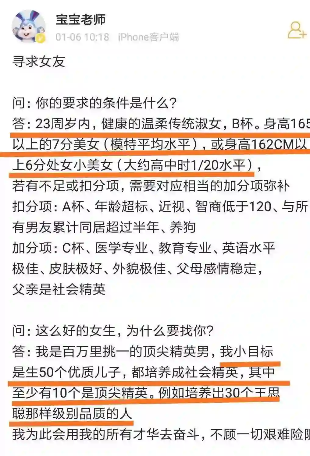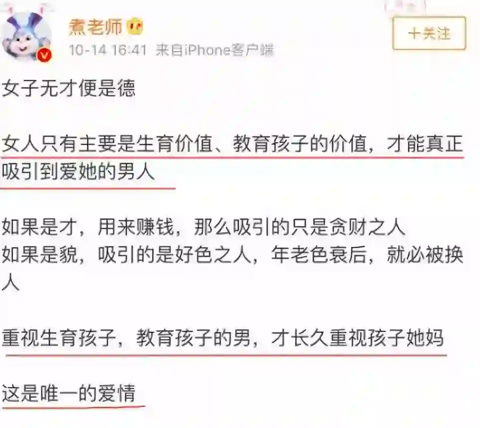 不像别的互联网大佬的画风,奇人徐波一直在不遗余力地推崇一夫多妻制,反女权,反对女性接受高等教育,反对女性拥有生育自由,教女孩怎样做人,并常年征23岁以下的“优质女性”为自己生育。