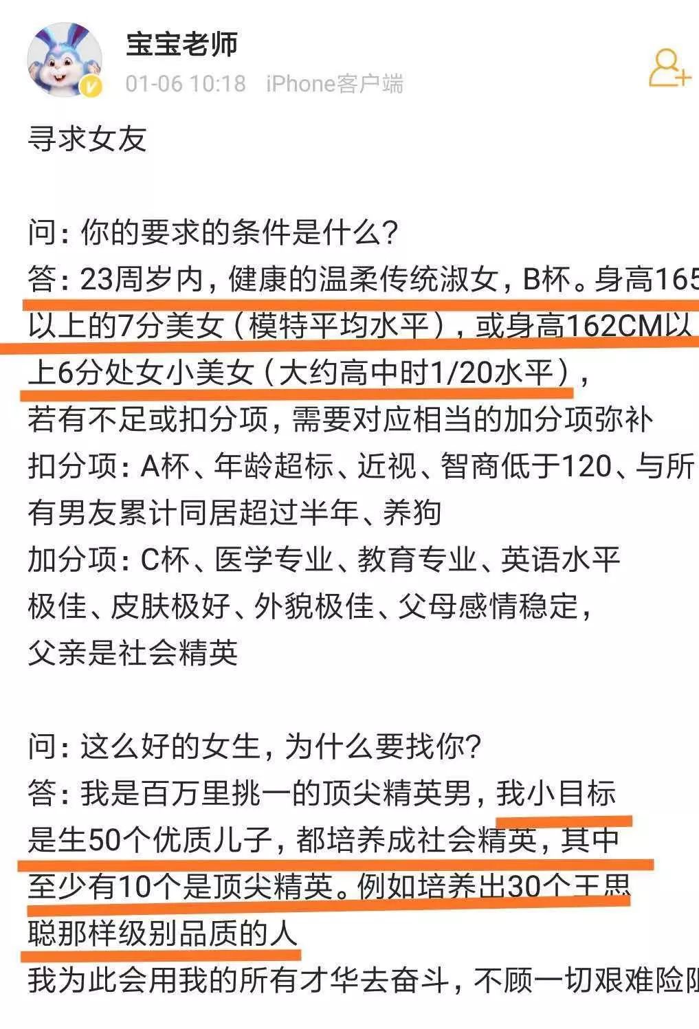 至于什么是“优质女性”,徐波在置顶微博里也给了解答。不同于王健林,徐总的小目标不是一个亿而是生50个优质儿子。不过徐总也赞同“生子当如王思聪”。