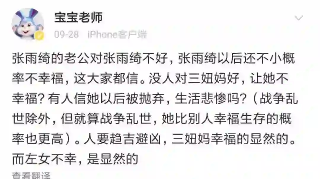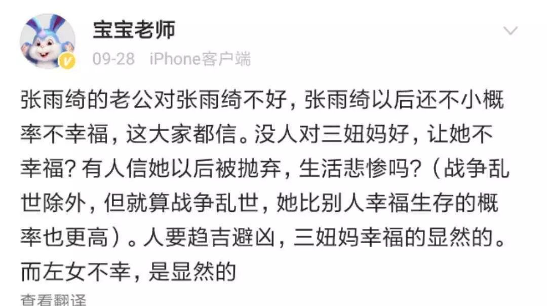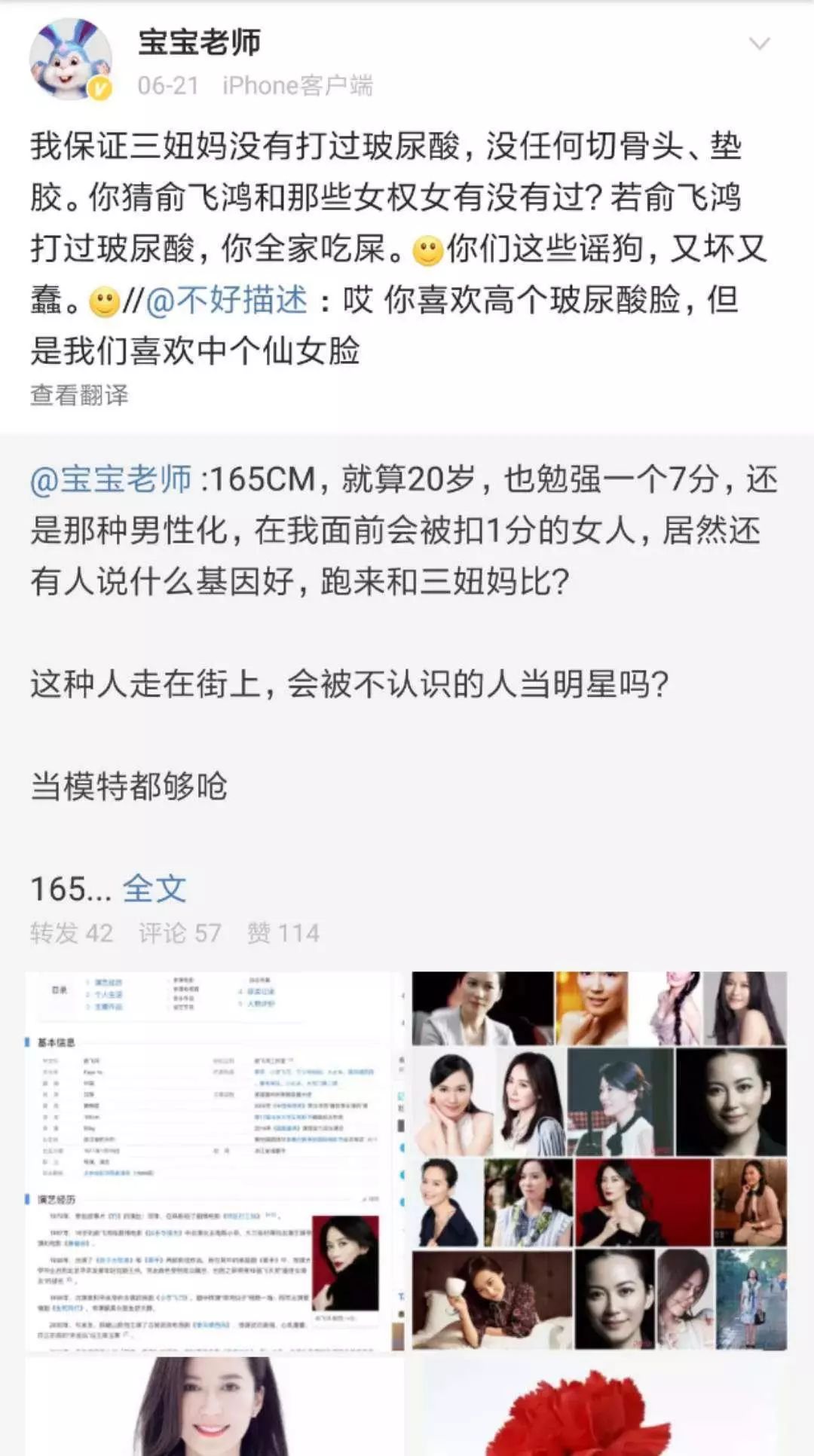 前段时间,张雨绮因为怒打前夫被许多女网友封为偶像,俞飞鸿因为爱情观言论被奉为人生导师。这两位也成了徐波奚落的对象:她们过得还不如三妞妈。