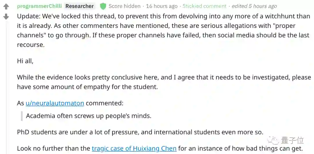 但对于举报者将抄袭这种事情曝光在Reddit的机器学习论坛上,也有不少人表示反对。