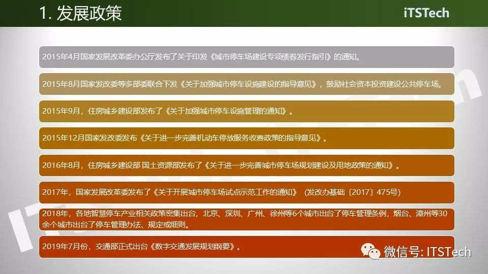 受私家车数量猛增,停车场建设滞后等多方面原因,近年我国“停车难”问题突出,而停车产业化、市场化是解决“停车难”的必由之路,由于经营性停车场投资规模大、资金回收周期长、投资回报率低,社会资本进入的积极性不高。因此国内各级政府政府相继出台相关政策予以支持,并伴随信息化技术的发展,逐步推动智慧停车的落地。