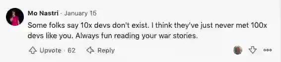 有些人说不存在 10x 程序员,但我认为他们是没有遇到像你这样的 100x 程序员。
