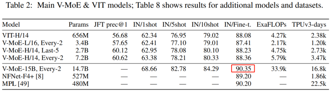 他们在 JFT-300M 扩展数据集上训练了一个具有 150 亿参数、24 个 MoE 层(出自 48 个块)的模型