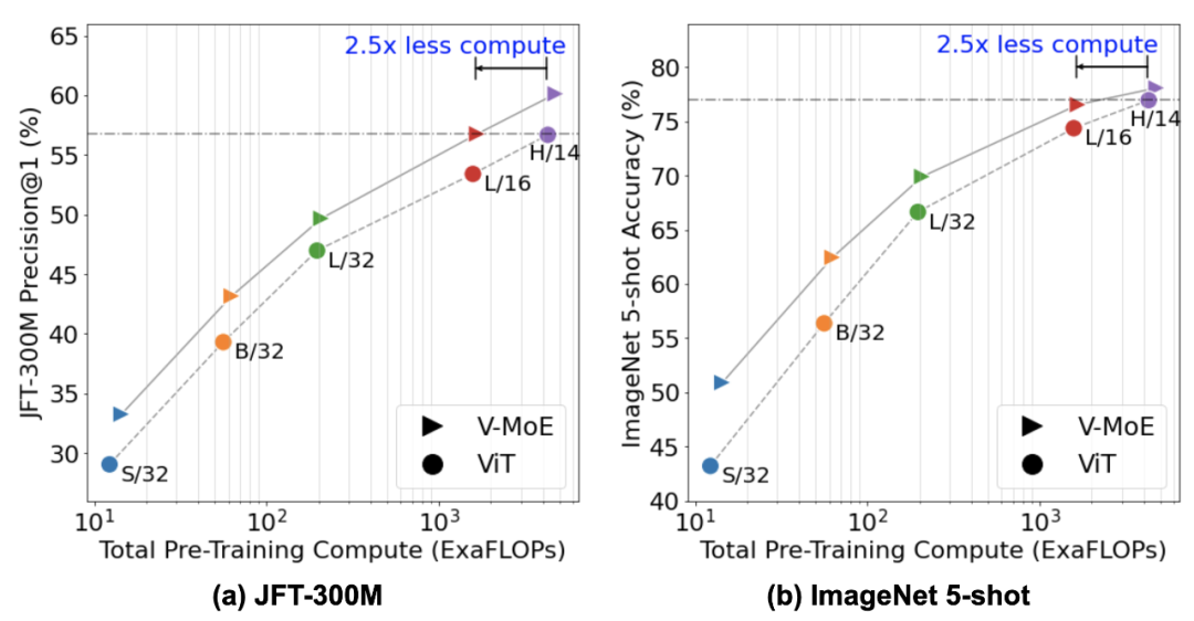 对于这两种情况,谷歌大脑发现,在给定训练计算量时,稀疏模型显著优于密集模型或者更快地实现相似性能。为了探索视觉模型的极限,
