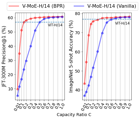 事实证明,适当地删除 token 对于提供高质量和更有效的推理预测至关重要。当专家容量减少时,Vanilla 路由机制的性能会迅速下降。相反,BPR 对低容量更为稳健。