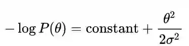 其中,第二行到第三行使用了贝叶斯定理,第三行到第四行P(X)可以丢掉因为与θ无关。注意-log P(X|θ)其实就是NLL,所以MLE和MAP在优化时的不同就是在于先验项-log P(θ)。好的,那现在我们来研究一下这个先验项,假定先验是一个高斯分布,即