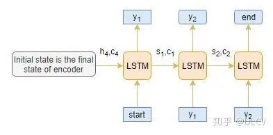 解码器可以在给定前一个单词的情况下预测序列中的下一个单词。解码器的初始输入是编码器最后一步的结果。