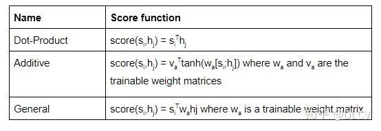 根据所使用的得分函数的类型,有不同类型的注意力机制。这里列举一些流行的注意力机制: