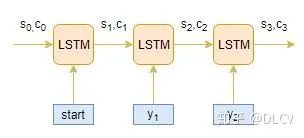 上一个时间step的隐藏层h1与记忆单元层c1将会用来初始化Decoder。