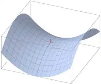 鞍点(saddle point)如下图(来自wiki)。和局部极小值相同的是,在该点处的梯度都等于零,不同在于在鞍点附近Hessian矩阵有正的和负的特征值,即是不定的,而在局部极值附近的Hessian矩阵是正定的。