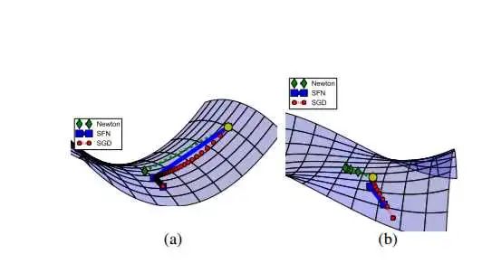 直观来看增加一些扰动,从下降的路径上跳出去就能绕过鞍点。但在高维的情形,这个鞍点附近的平坦区域范围可能非常大。此外,即便从一个鞍点跳过,这个跳出来的部分很可能很快进入另一个鞍点的平坦区域—— 鞍点的数量(可能)是指数级的。