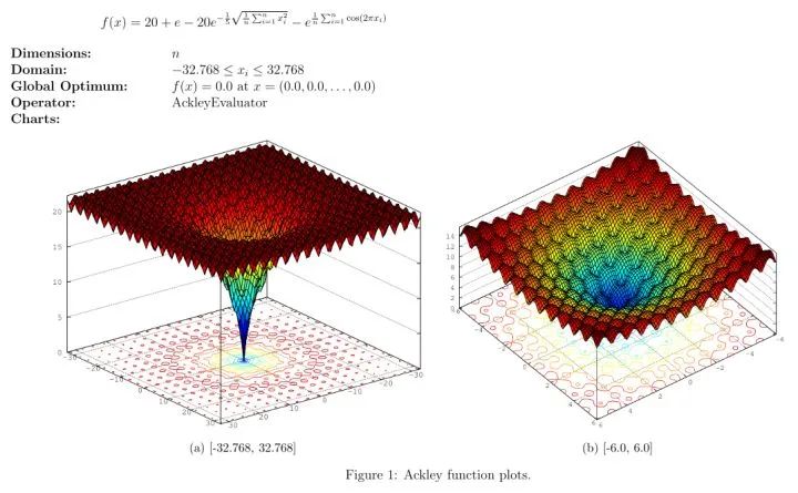 说一个近年来神经网络方面澄清的一个误解。BP算法自八十年代发明以来,一直是神经网络优化的最基本的方法。神经网络普遍都是很难优化的,尤其是当中间隐含层神经元的个数较多或者隐含层层数较多的时候。长期以来,人们普遍认为,这是因为较大的神经网络中包含很多局部极小值(local minima),使得算法容易陷入到其中某些点。这种看法持续二三十年,至少数万篇论文中持有这种说法。举个例子,如著名的Ackley函数 。对于基于梯度的算法,一旦陷入到其中某一个局部极值,就很难跳出来了。(图片来自网络,压缩有点严重。原图可见Documentation/Reference/Test Functions - HeuristicLab[1])。