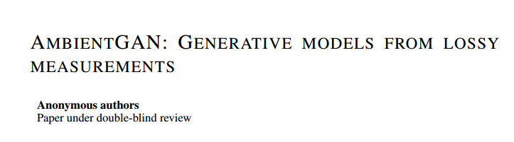 AmbientGAN 使我们可以直接用有噪声或者不完整的样本来训练生成模型。模型的生成器可以成功地用测量函数从正确的分布里预测样本。