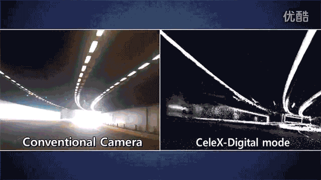 传统图像传感器记录的是阵列中像素点在曝光时间内的总亮度值,而DVS传感器则观察每个像素点的光强是否随时间有细微的变化。这种区别可以用众所周知的一个数学常识来表达:积分和微分,而积分常常会把一条波动的曲线的特征丢失,而这恰恰是对运动物体的检测至关重要的。最终的结果是,CeleX传感器在其特殊的“动态模式下”能够独立自主地记录50万像素画面中每个像素点的每次变化。同理,假如画面中单个像素点的数据没有变化,那么传感器将只保留之前的记录数值。