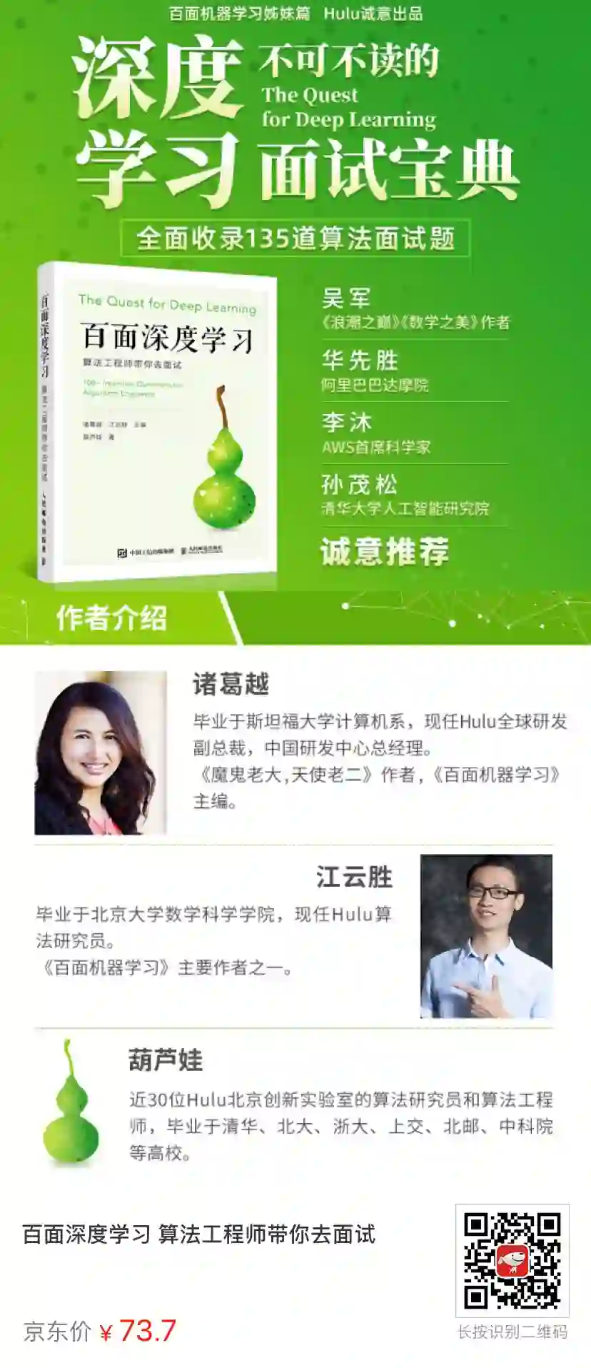 这就要求求职者不仅需要扎实的理论基础,还要有一定的工程实践能力。市面上算法类的书籍已有不少,但都普遍倾向于理论基础,面向实践应用的书籍,或者说面向算法岗面试的书籍并不多,而《百面深度学习》可以说是为算法岗面试而生。