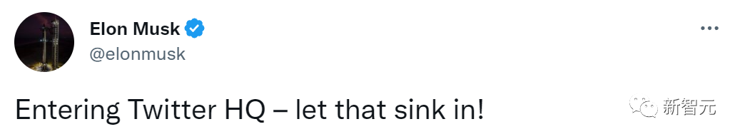 新老板来视察,当然少不了发推特:「进了Twitter总部了,let that sink in !」