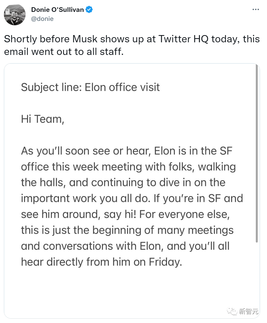 实际上,对于马院士这次「突袭到访」,Twitter高层早就知道,还给全体员工发了邮件,大致意思是说: