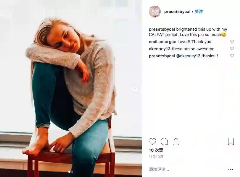 原是「素人」的 Caroline Patterson 也开始加入预设大军,图片来自 Instagram