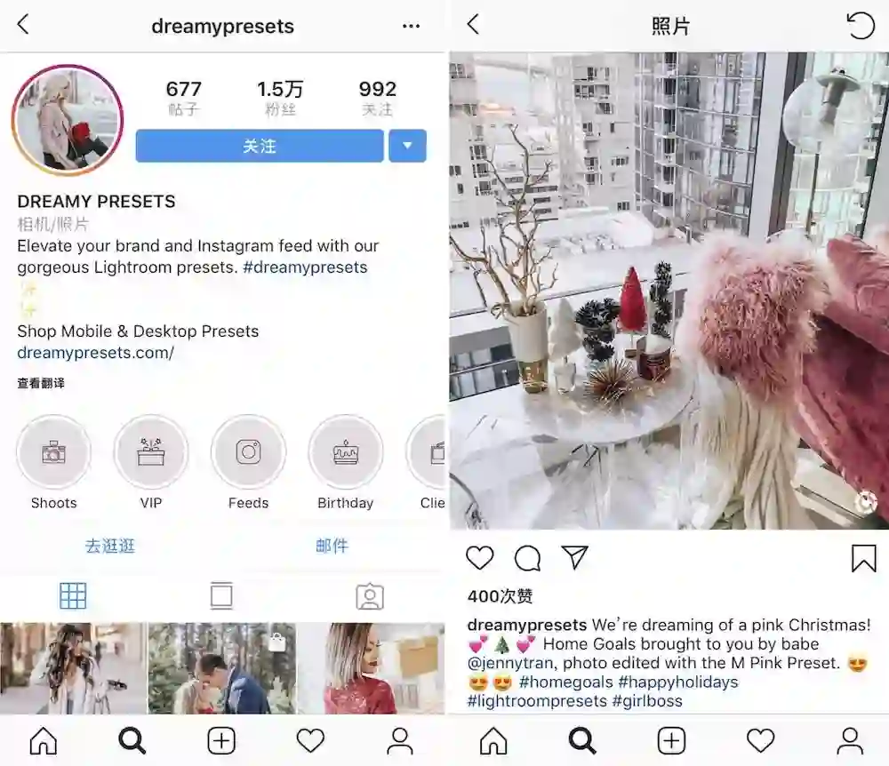 Dinh 原本是一位生活方式网红,但现在她更多精力都用在设计预设,运营自有的相关网站和预设专用 Instgaram 账号。