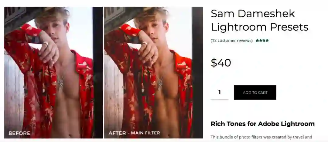 为了保持特定风格,很多网红都有自己固定的预设。当创造和分享的方式变得更便利,越来越多网红就开始将自己的「拍照风格」作为一种产品销售。