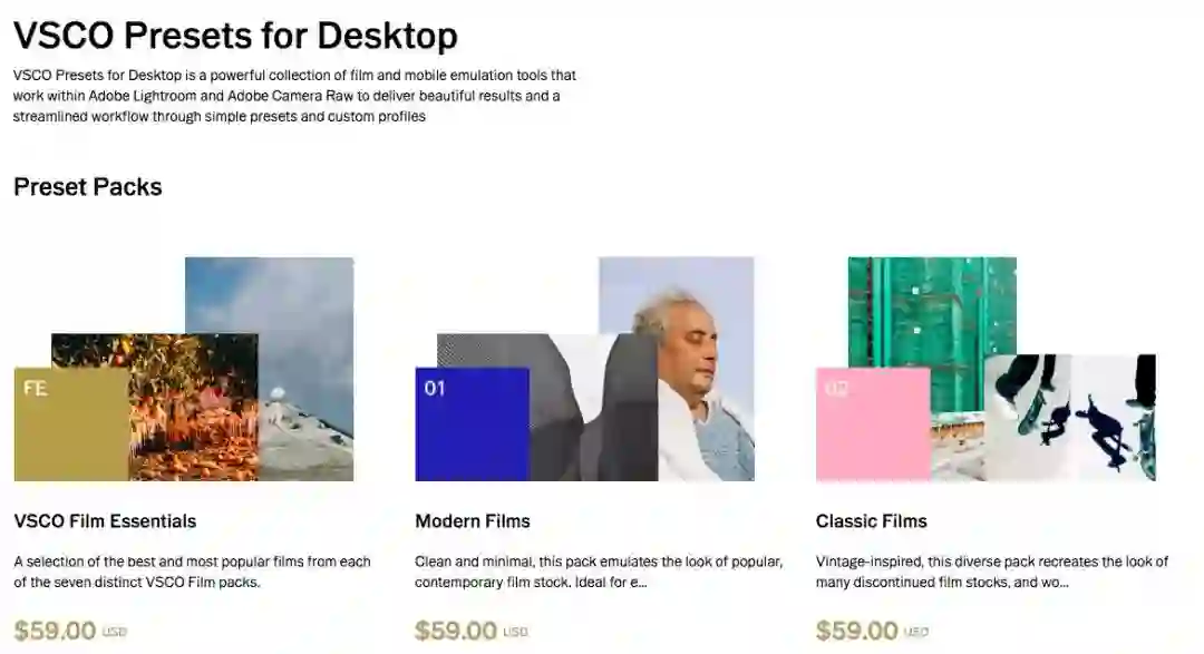 VSCO 官网上销售的预设